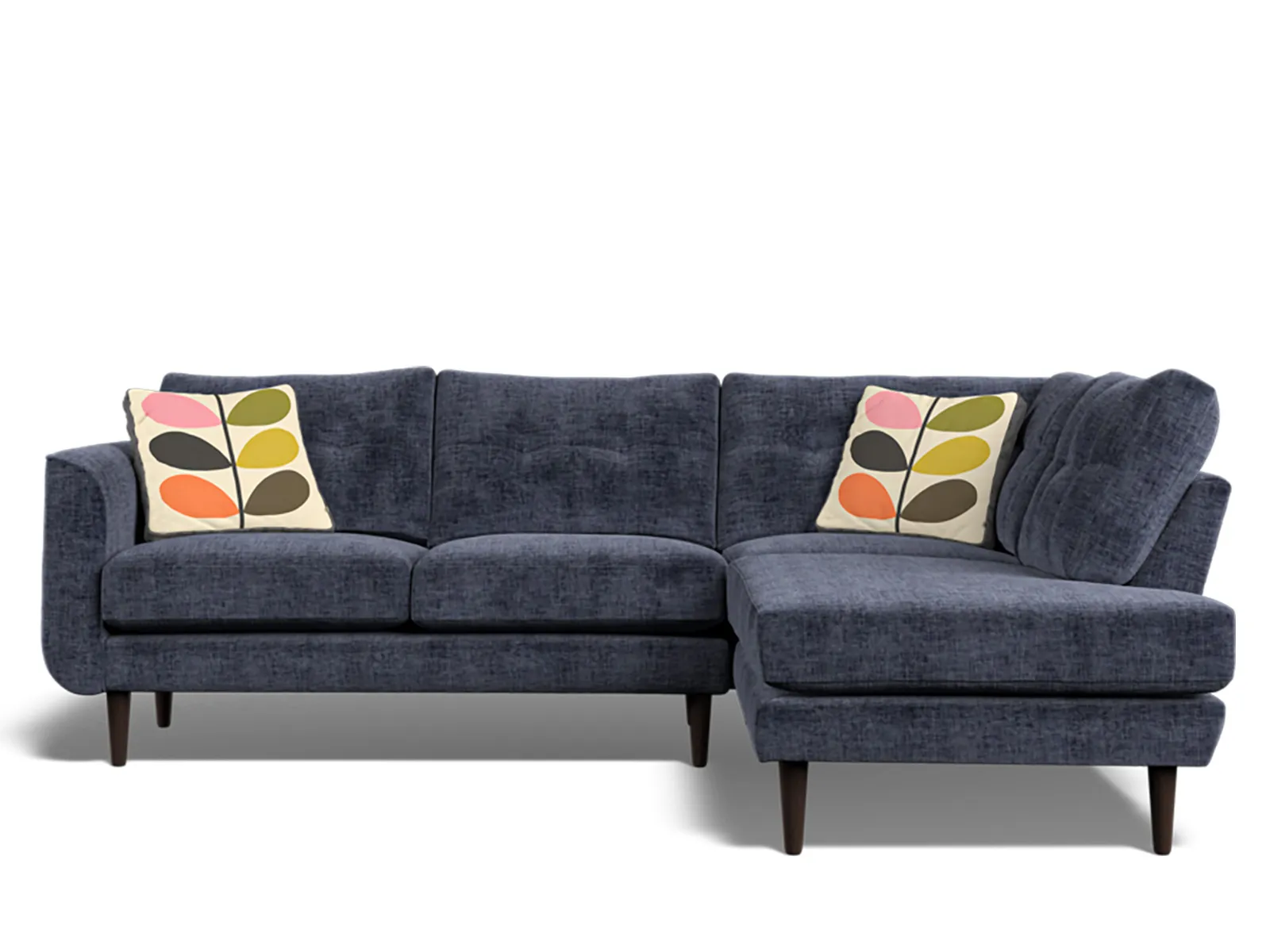 The Linden range is a total throwback to vintage 1960s style with a fun, playful twist! Featuring neat, leaf-shaped arms and buttoned backs, it’s the perfect piece to bring some serious style and brightness into your home, no matter if you lean more classic or modern. This corner group comes in a fab selection of bright velvets, textured plains, with the option to add scatter cushions of your choice. A true mix of retro charm and Orla Kiely’s iconic design magic!
